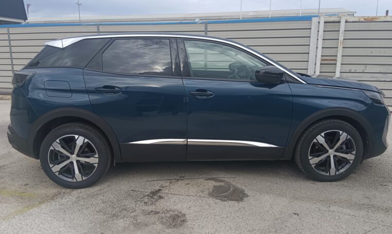 ABS, ESP, REF e AFU (con Hill Assist), Accensione automatica luci di emergenza in caso di forte decelerazione, Airbag conducente e passeggero (con disattivazione a chiave), laterali doppi + a tendina (due), Alzacristalli ant./post. elettrici antipizzicamento, comando sequenziale, Ambient LED Pack, Decori plancia di bordo e pannelli delle porte in tessuto trama “Brumeo” (o “Texa”), Fari posteriori Full LED 3D, Fissaggi ISOFIX seggiolino bambini (1 anteriore passeggero, 2 posteriori laterali), Freno di stazionamento elettrico e Hill Assist, Indicatore perdita di pressione pneumatici, Interni in Misto TEP/tessuto Colyn Mistral, Kit di riparazione pneumatici, Mascherina anteriore senza cornice, Pack safety plus, Pack Visibilità, Palette cambio al volante, Pedaliera sportiva in alluminio, Peugeot Connect SOS & Assistance, Predisposizione – Peugeot Connect SOS & Assistance, Prese 12V (x3), Profili finestrini cromati, Profili vetratura neri, Sedile conducente con regolazione lombare, Sedile passeggero ripiegabile in avanti, Sensori di parcheggio anteriori, Specchietti di cortesia con illuminazione a LED, Time Drive Control, Touchscreen capacitivo da 10″ HD Connected Navigation con servizio Speedcam, Vetri posteriori e lunotto oscurati, Volante multifunzione in pelle pieno fiore, Lane Departure Warning, Appoggiagomiti centrale anteriore con vano portaoggetti, Cambio automatico a 8 marce, Cerchi in lega 18″ Detroit Grigio Storm, Chiusura centralizzata con telecomando, Climatizzatore automatico bi-zona con aeratori posteriori, Mirror screen (Apple CarPlay, Android Auto), Regolatore e limitatore di velocità programmabile, Fari DRL LED ad artiglio con estremità inferiore cromata, Active Safety Brake (con distance alert), Peugeot I-Cockpit con Head-up Digital Display 12,3″, Keyless Access & Start, Cinture di sic. ant./post. con pretensionatore, limit. di sforzo, reg. in altezza, 3 punti ancorag., Radio DAB, Retrovisori esterni riscaldabili e regolabili elettricamente, Ret